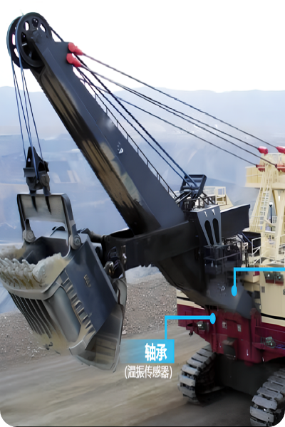 對斗輪挖掘機、帶式輸送機、鏈斗鏟等重要設(shè)備的電機、減速箱、軸承座、馬達等安裝振溫一體傳感器進行振動監(jiān)測,通過采集和分析振動、溫度、轉(zhuǎn)速等數(shù)據(jù)實現(xiàn)設(shè)備機構(gòu)運行狀態(tài)的實時在線監(jiān)測、分析和報警。能結(jié)合設(shè)備PLC中的運行小時數(shù)、軸承狀態(tài)、作業(yè)狀態(tài)等工況參數(shù),對設(shè)備的運行、效率及剩余壽命進行統(tǒng)計和評估,給出運維和維修建議,實現(xiàn)對設(shè)備全生命周期的管理,確保整機設(shè)備安全。