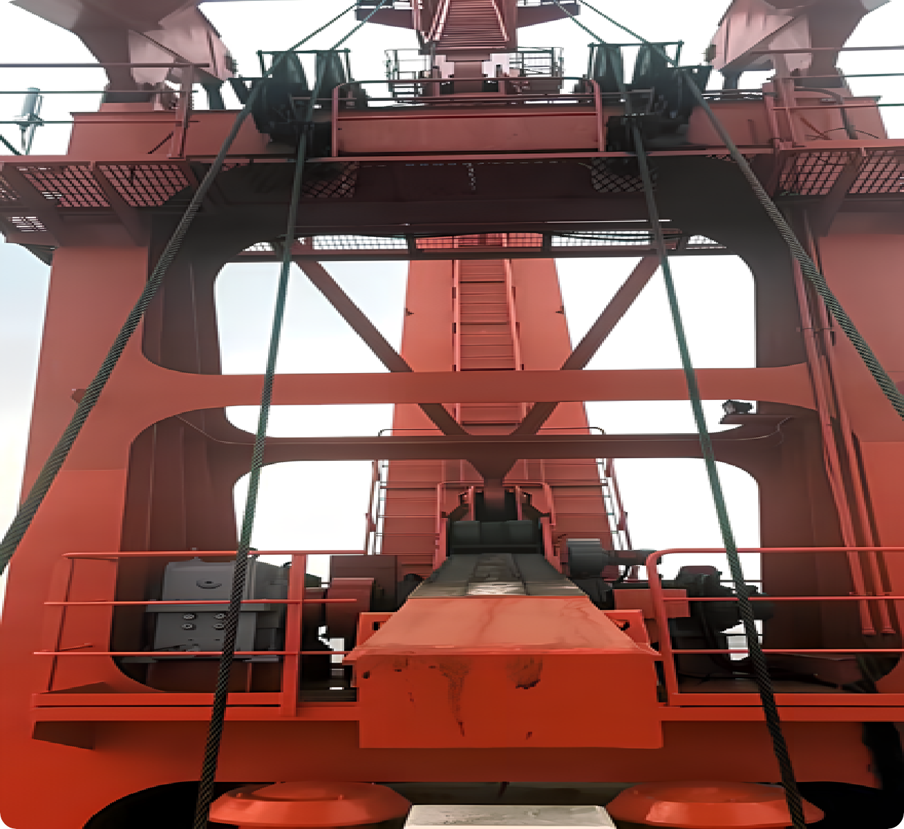 對岸橋的前拉桿、中拉桿、后拉桿、主梁、梯形門架、斜撐桿等受力集中點(diǎn)和重要部位、輪胎吊/軌道吊的主梁、門框立柱、主梁與立柱連接處等受力集中點(diǎn)和重要部位進(jìn)行應(yīng)力監(jiān)測,實時掌握受力大小,對受力過大進(jìn)行預(yù)警,對受力不對稱進(jìn)行拉力比和不對稱度進(jìn)行分析,避免受力不均過大。
